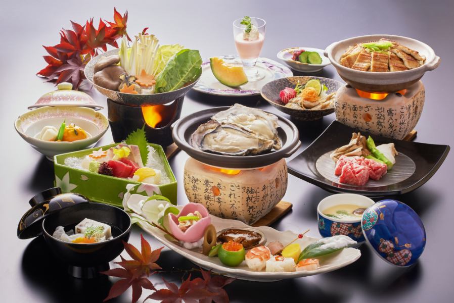 我们根据菜肴的质量提供三种菜肴,“放松怀石料理”、“款待怀石料理”和“主厨大牧怀石料理”。请根据您的喜好,目的,预算选择。